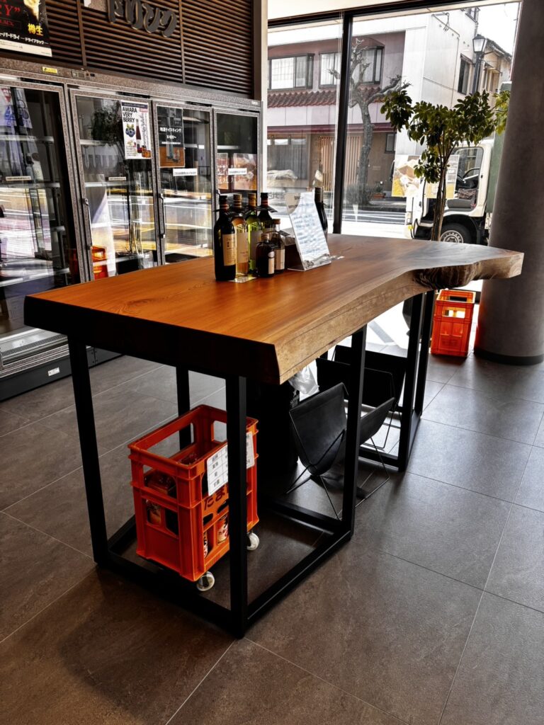一枚板は、丸太を自然の形を残しながら大胆にカットした素材です。天然木の中では最高級にプレミアムな素材です。