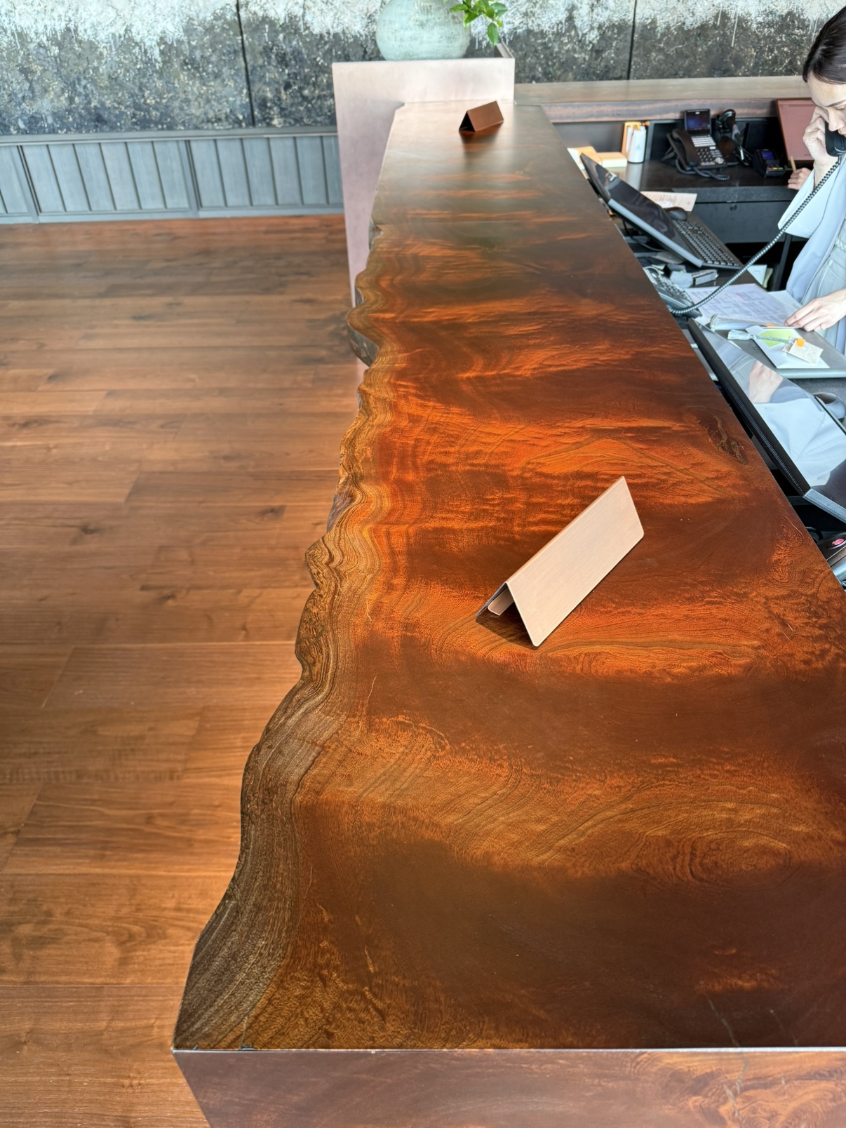 2025.08.25 一枚板製品 ラグジュアリーホテル「パティーナ大阪」へサペリカウンターを納品 大阪に新しくできたラグジュアリーホテル「パティーナ大阪」のバーラウンジへサペリのカウンターを納品しました。 サペリは、フロントカウンター、ラウンジのメインカウンターおよび直接DJによる音楽を楽しめるスペースに使われています。 また、同じ空間には同じく当社が納品したマコーレのカウンターもあります。 ラグジュアリーホテル「パティーナ大阪」へマコーレカウンターを納品