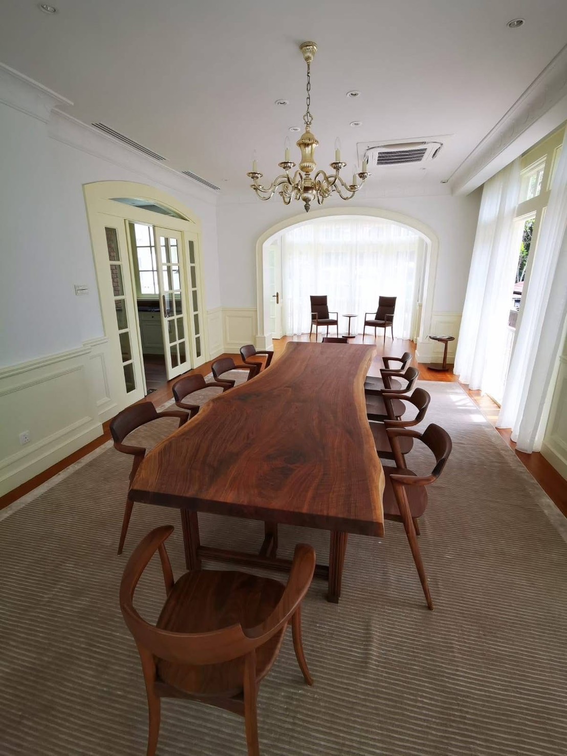 2025.01.11 一枚板製品 シンガポールのお客様へ一枚板ウォールナットテーブルを納品しました。 シンガポールへ一枚板ウォールナットテーブルを納品しました。 こちらは個人のお施主様のお宅となります。 白を基調としたお部屋に幅広でダイナミックなウォールナットがとてもよく似合っています。 脚やチェアもウォールナットで揃えているのも大変素敵ですよね。 板蔵ファクトリーでは最近、海外の方からのお問い合わせもいただくようになっています。 国内のみならず世界に日本の銘木の良さや弊社の加工技術が伝わっているのだと思うと嬉しい限りです。