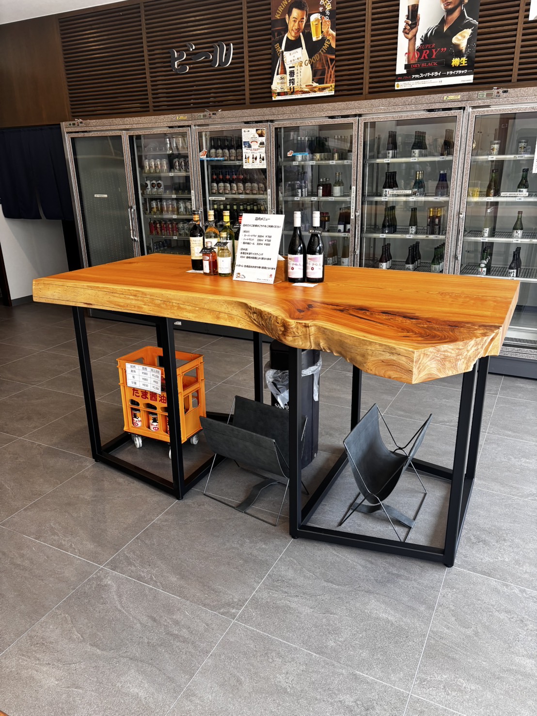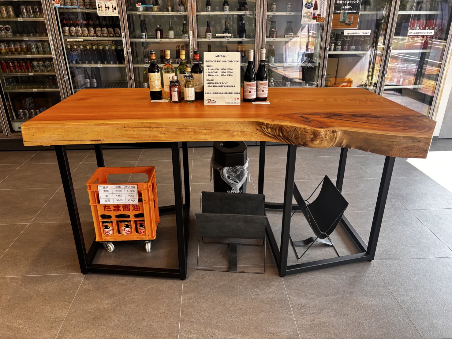 お店の顔として 福井県の酒販店様へケヤキの一枚板テーブルを納品しました
