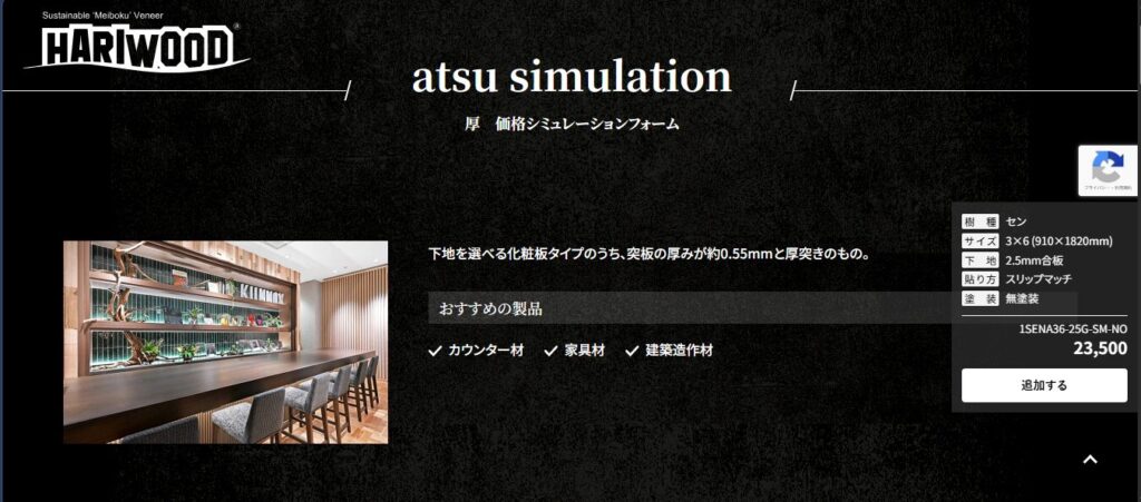 1. 理想を形にする「シミュレーションシステム」を搭載 今回の目玉は、オンライン上で好みの仕様を組み合わせられるシミュレーションシステムです。 豊富な樹種の中からお好きなものを選び、「塗装」や「貼り方」を自由に組み合わせて仕上がりイメージを確認できます。そのまま概算の見積もりを取ることができ、さらにお問い合わせフォームへも直結しているため、検討から相談までが非常にスムーズになりました。
