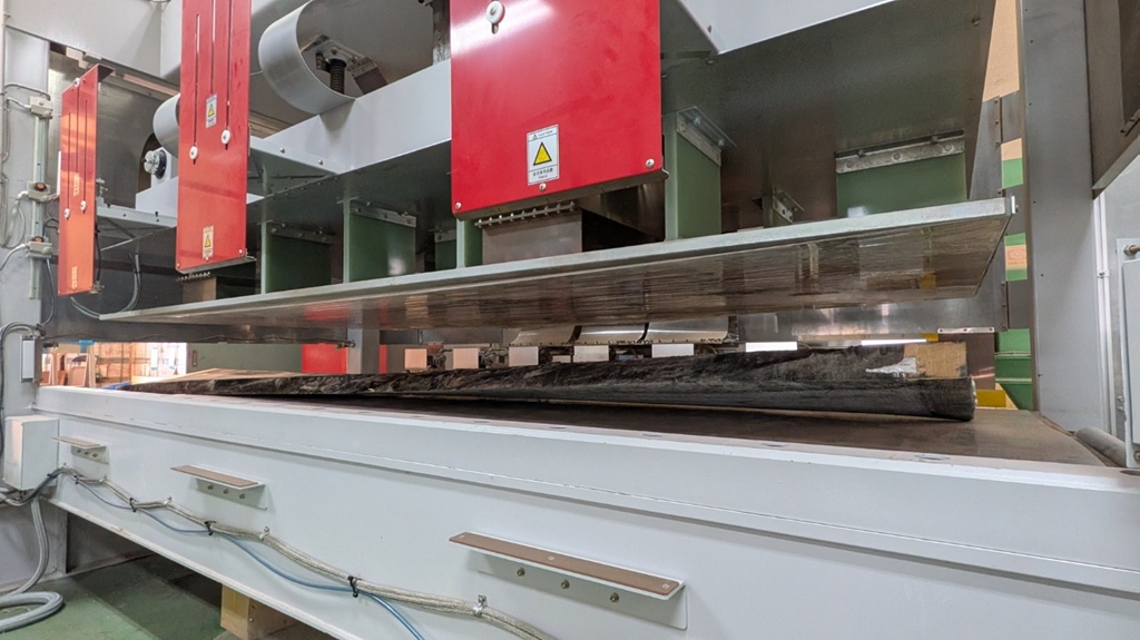 そこで私たちは、このミズメザクラを「高周波プレス機」にかけ、ねじれをとることにしました。