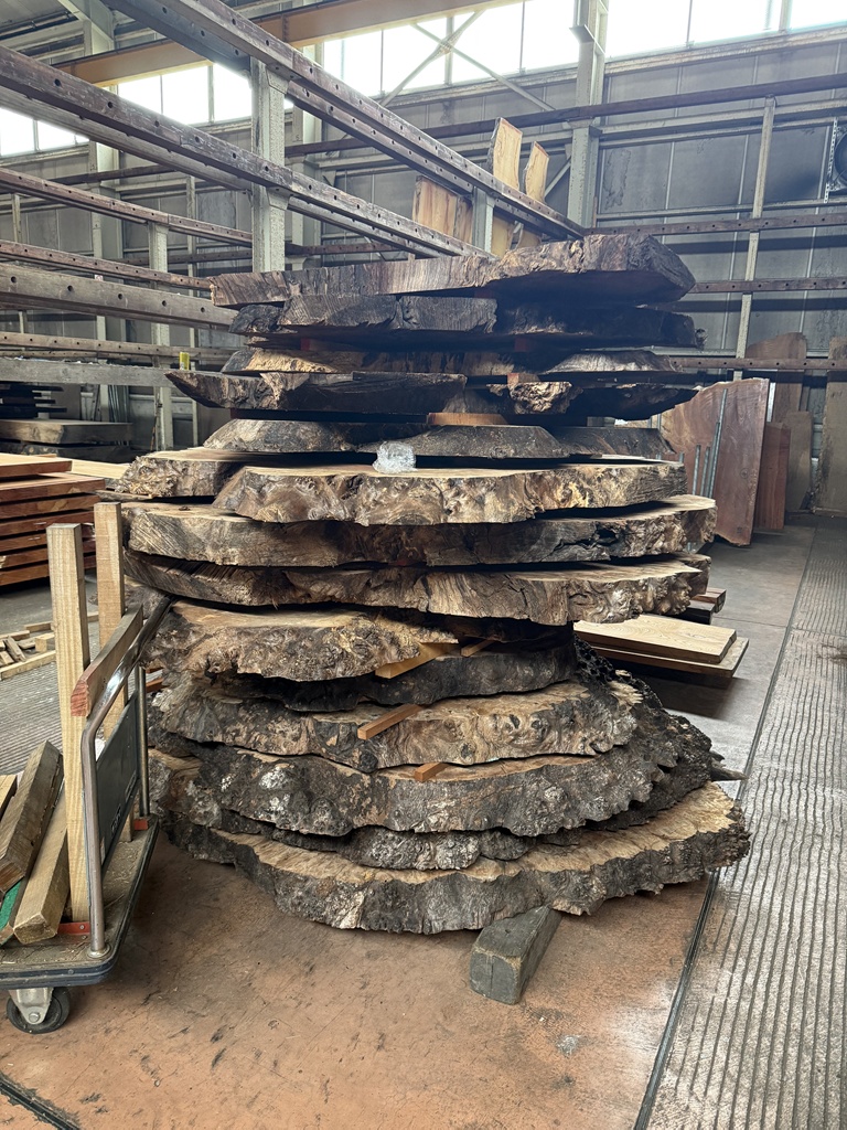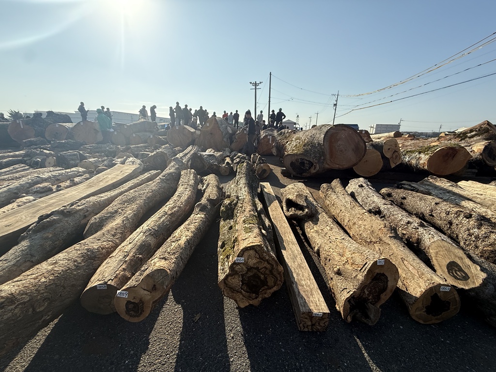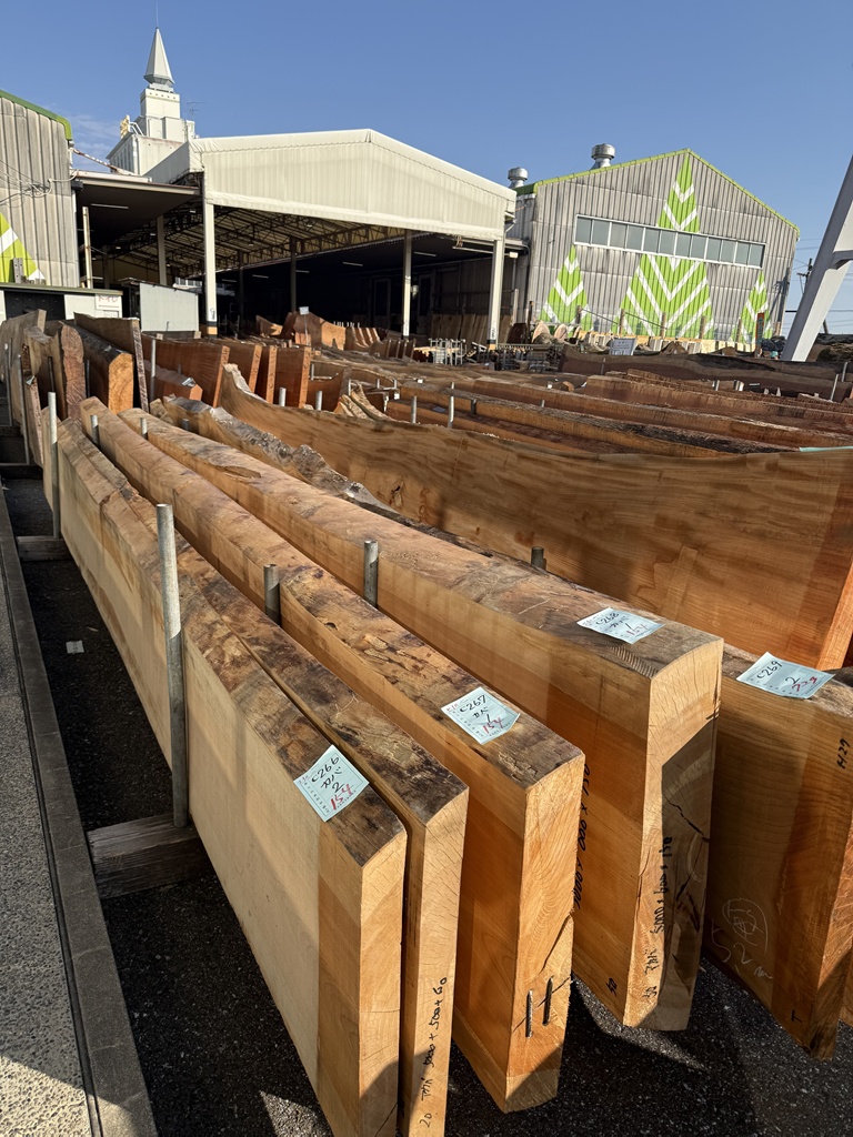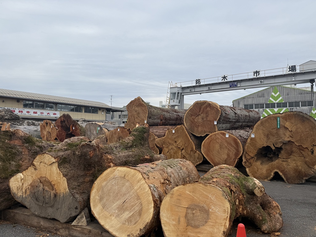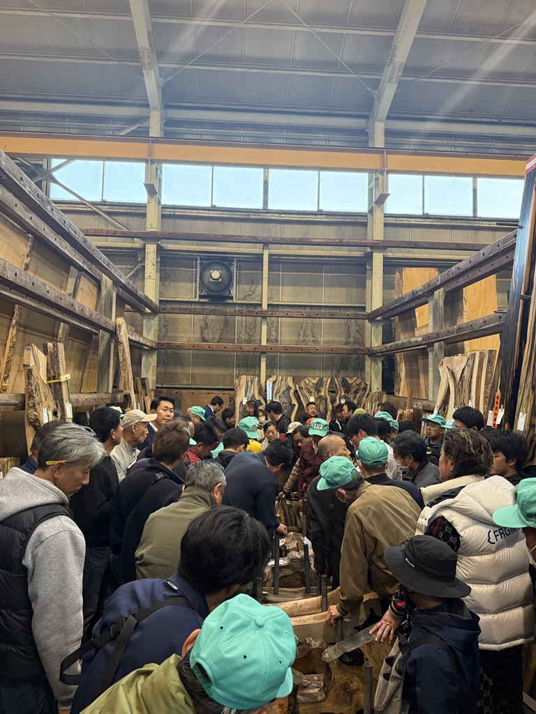 こんにちは!板蔵ファクトリーの吉田です。銘木シーズンの冬到来です。先週は私たちのホームである岐阜の、岐阜県銘木協同組合にて銘木の祭典「全国銘木展示大会」が開催されました。久々に歩けないくらいの人混みになり、銘木業界はまだまだ活況なのを感じました。詳細はニュースにて!丸太も手当始めています!