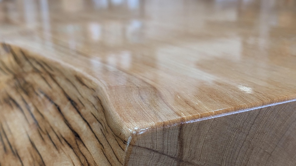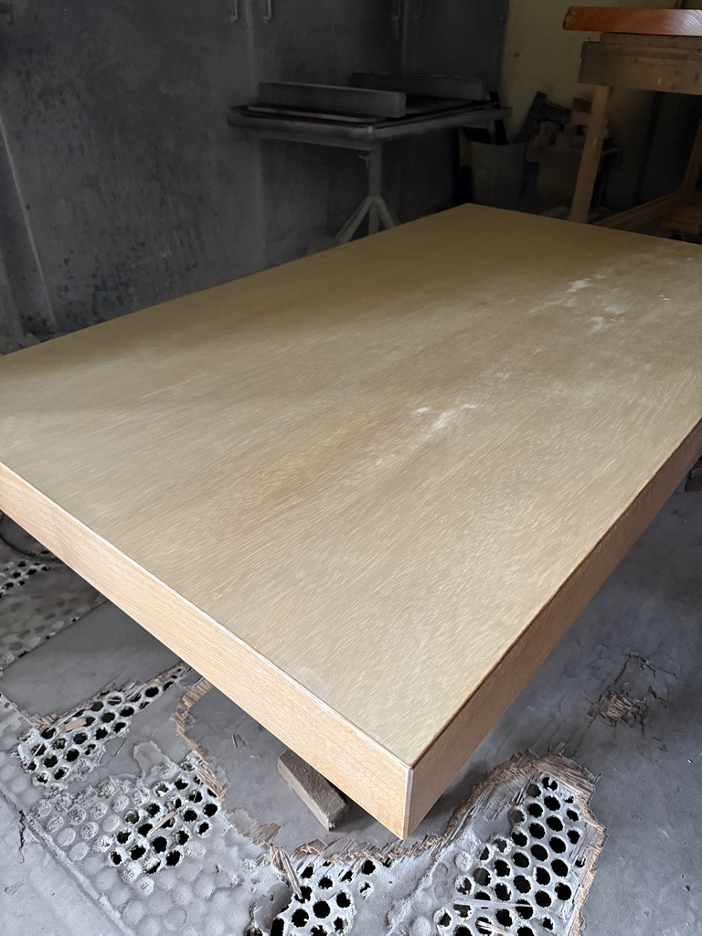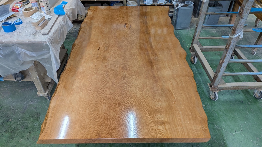 今月はなにがあるかなと向かってみれば、とてもきれいなヤクシマツガの一枚板が塗装されていました。