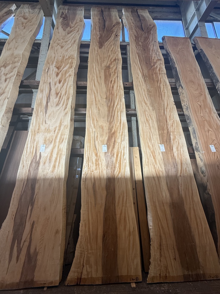 板蔵にはほかにも複数のヤクシマツガ材があります(検索システムでもご覧になれます)。テーブルサイズが主ですが、一部4m級の長い材もありますので、お探しの際はぜひご相談ください。