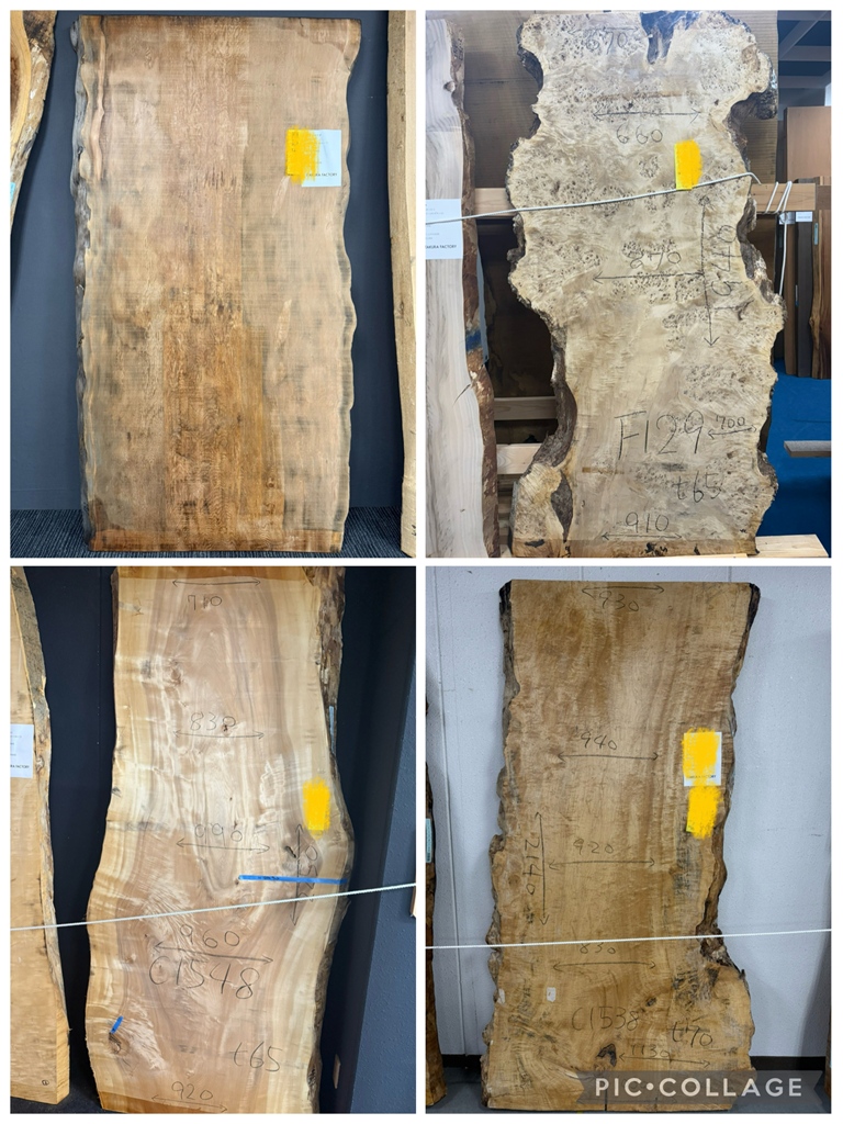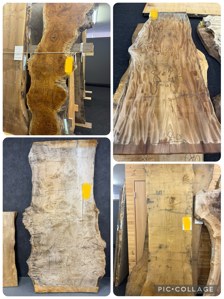 複数のお客様に「他の一枚板メーカーではない板を買いに来た」と、言っていただけたことが最高にうれしかったです!国産材・外国産材問わず、上記のようなキラキラ系の板が多数決まりました。改めてありがとうございました!